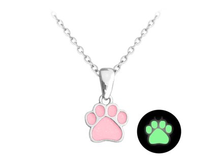 MINET Svítící růžový dětský stříbrný náhrdelník TLAPKA