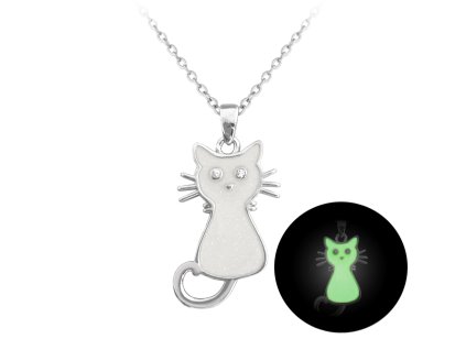 MINET Svítící bílý dětský stříbrný náhrdelník KOČIČKA