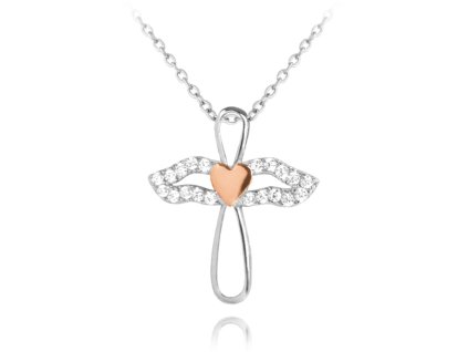 MINET Třpytivý stříbrný náhrdelník ANDĚL s růžovým srdíčkem