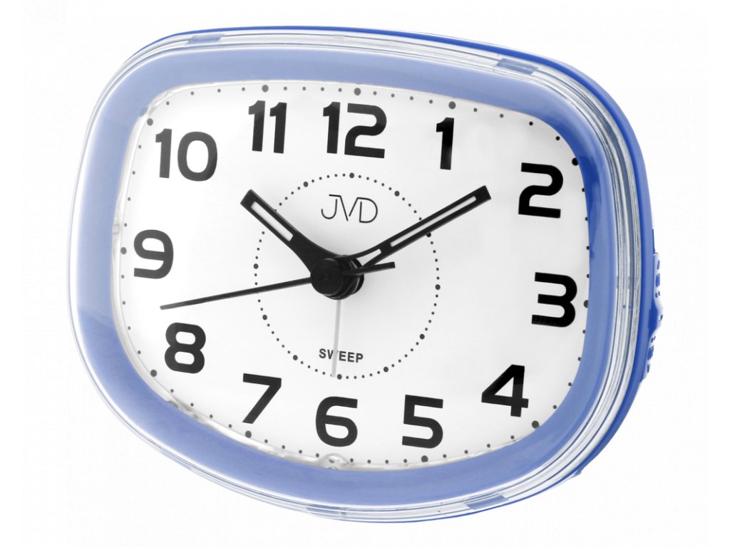 Analogový budík s tichým chodem, celoplošným podsvícením číselníku, opakovaným buzením a postupným zesilováním budíku.