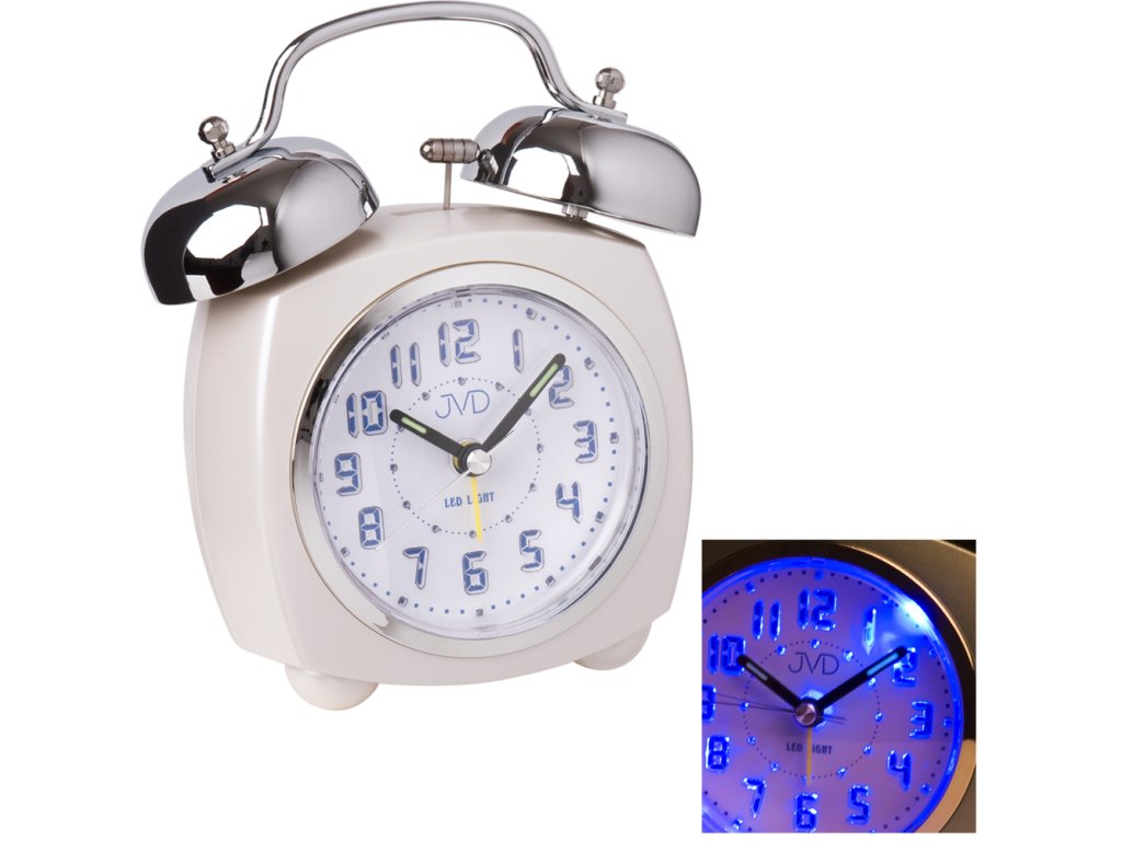 Tradiční a oblíbený model budíku JVD hned na první pohled upoutá především svým jednoduchým a moderním vzhledem. Způsob buzení je ale klasický – pomocí mechanického zvoňění (drnčák). Mezi jeho výhody patří také například LED svítící číslice a opakované buzení.