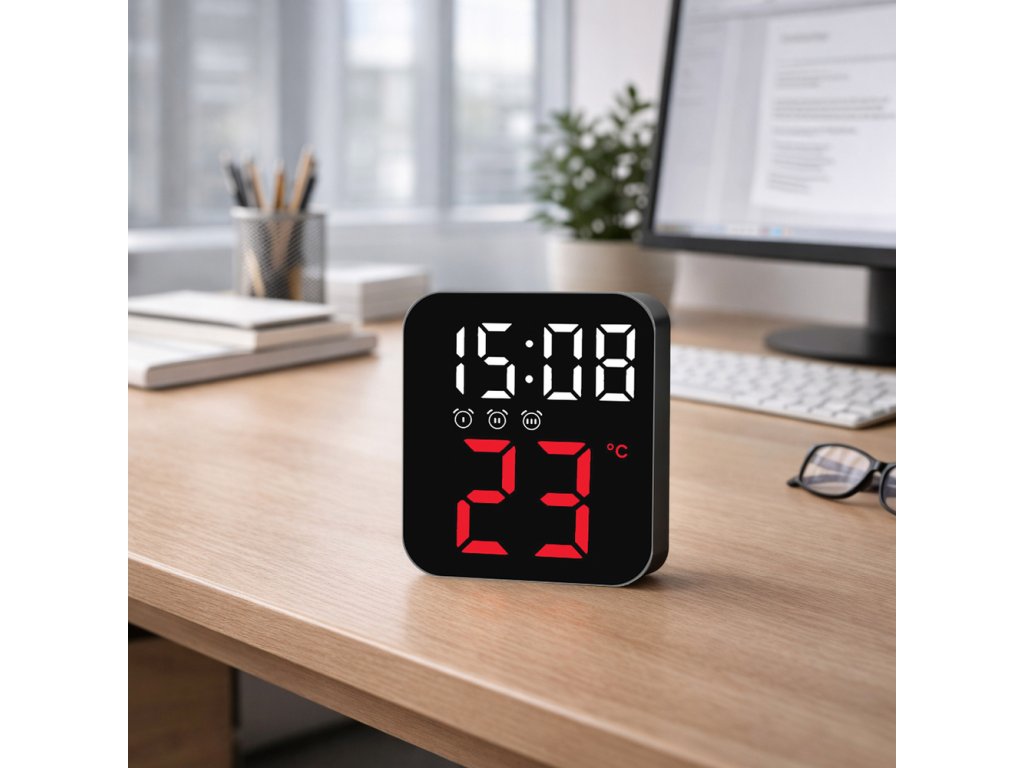 | Speciální funkce: | 12-ti nebo 24-hodinový denní režim, Teploměr, Elektrický adaptér do sítě, Budík, Datum (kalendář), Celoplošné prosvícení displeje, LED podsvícení, Budík 3x, Celoplošné podsvícení |
