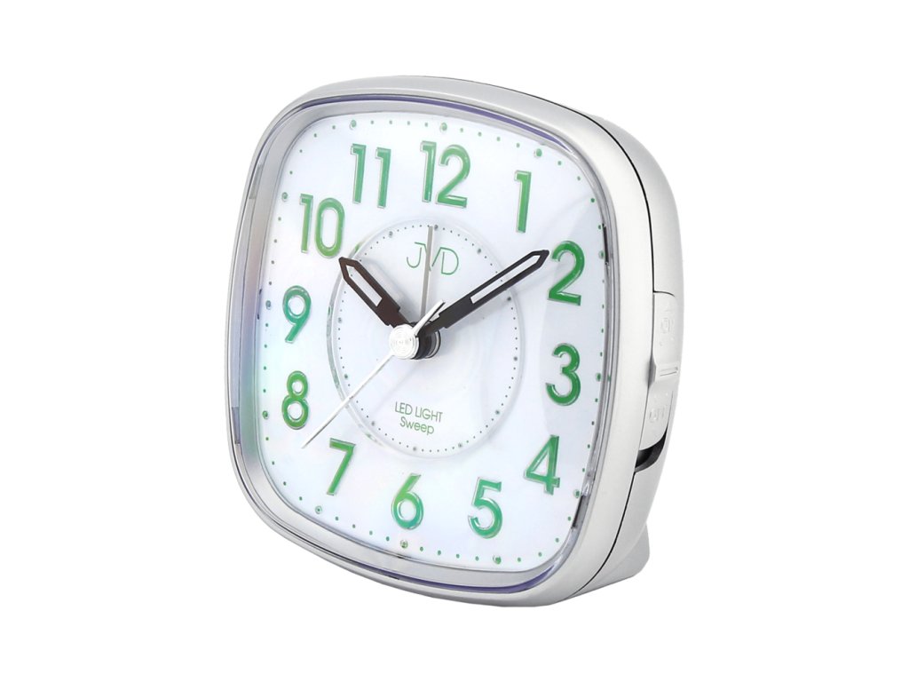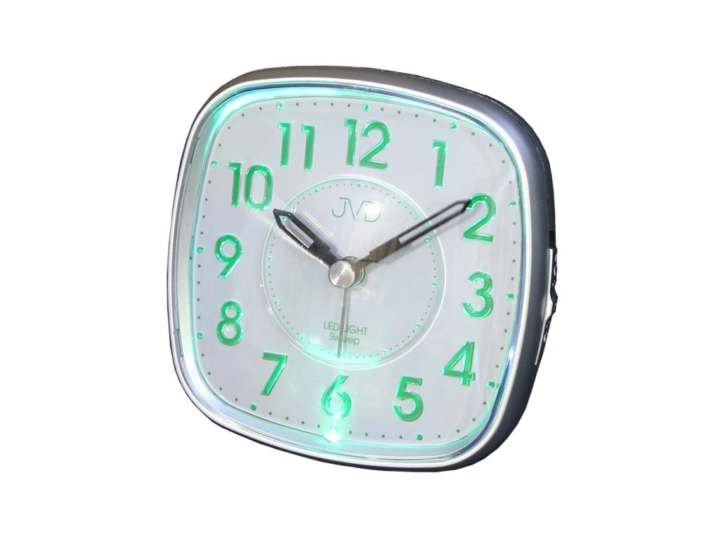 Quartzový budík JVD má LED podsvícení číselníku, díky čemuž krásně vyniknou čísla na ciferníku. Díky postupnému zesilování zvonění a opakování buzení jen tak nezaspíte. Praktickou vlastností je také plynulý chod vteřinové ručky - budík netiká.