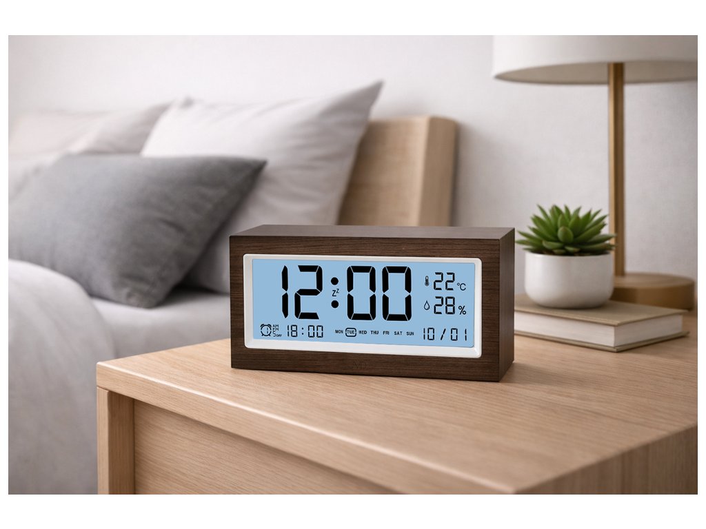 | Speciální funkce: | 12-ti nebo 24-hodinový denní režim, Vlhkoměr, Datum (kalendář), Budík 3x, Budík, Teploměr, Postupné zesilování zvonění |
