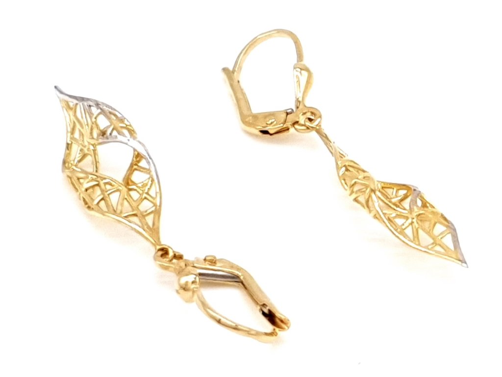 Celozlaté visací náušnice ze žlutého a bílého zlata