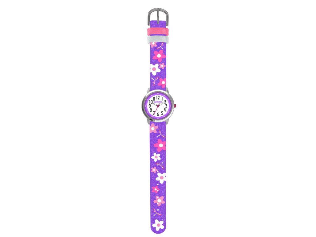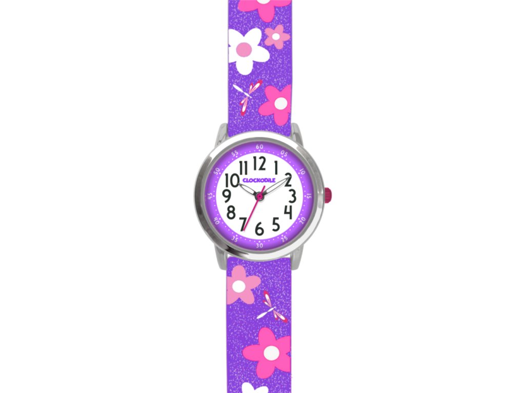CLOCKODILE Květované fialové dívčí dětské hodinky FLOWERS se třpytkami