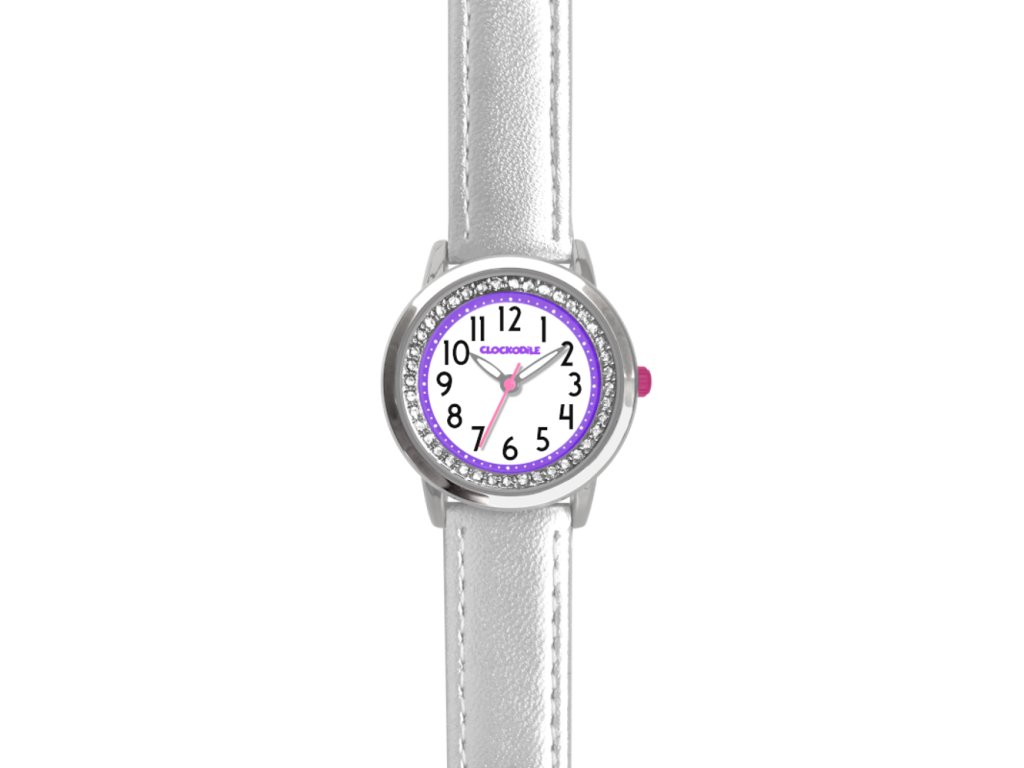 CLOCKODILE Stříbrné třpytivé dívčí dětské hodinky s kamínky SPARKLE