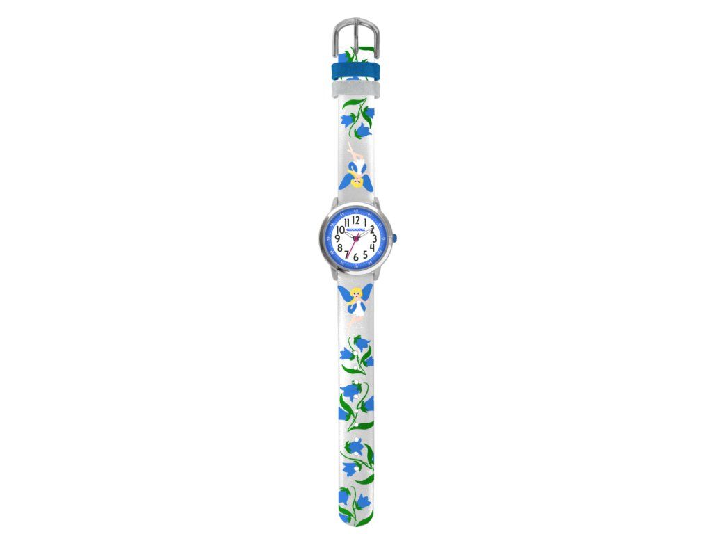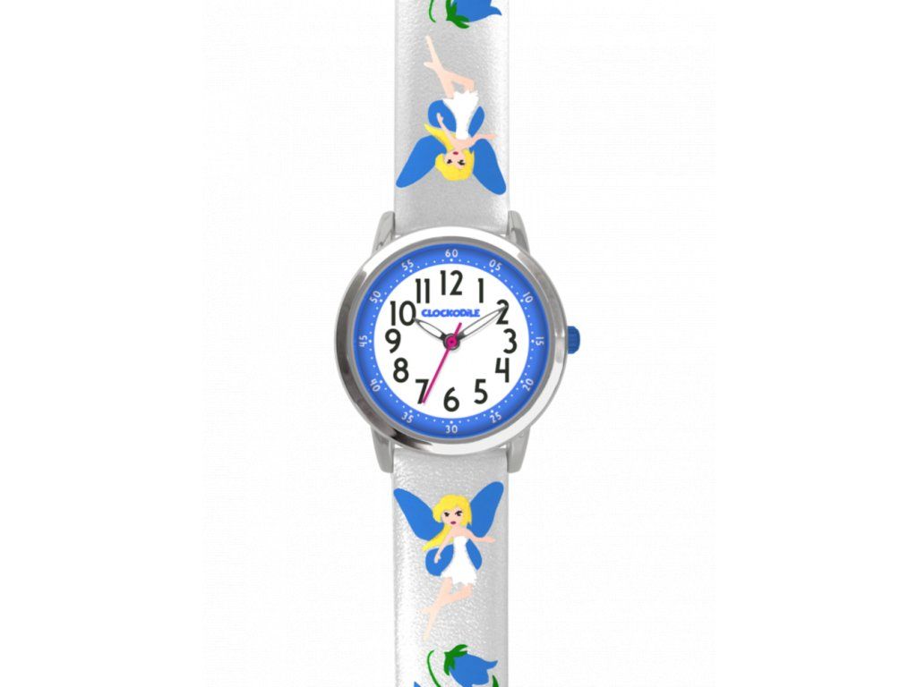 CLOCKODILE Stříbrné třpytivé dívčí dětské hodinky s modrými vílami FAIRIES