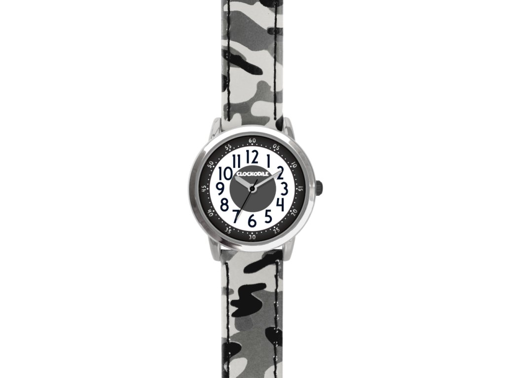 CLOCKODILE Svítící šedé chlapecké dětské hodinky ARMY s maskáčovým vzorem