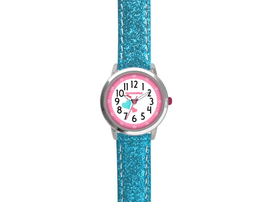 CLOCKODILE Tyrkysové třpytivé dívčí dětské hodinky HEARTS
