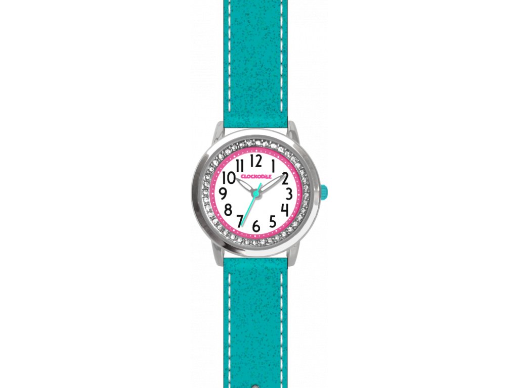 CLOCKODILE Tyrkysové třpytivé dívčí dětské hodinky s kamínky SPARKLE