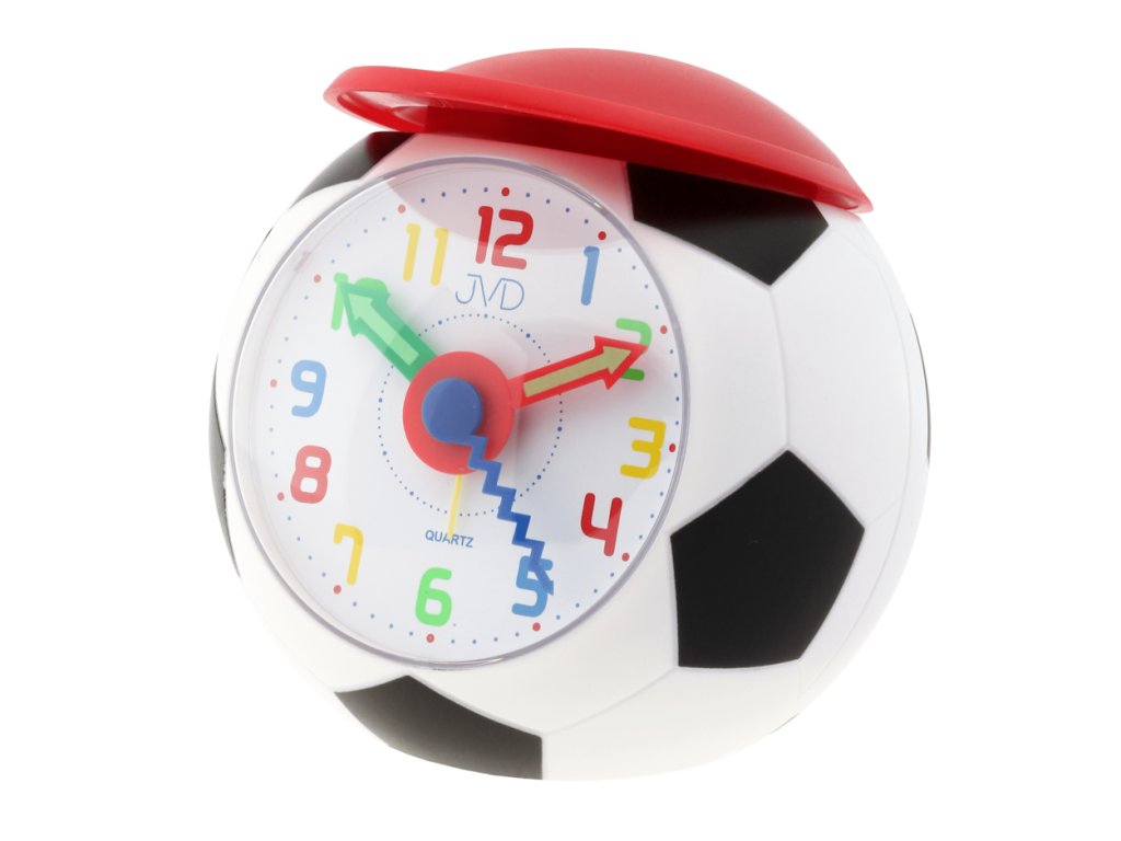 Tento budík JVD je vhodný zejména pro děti- malé fotbalové fanoušky. Originální tvar fotbalového míče s čepicí a velké číslice ocení hlavně při učení se času.