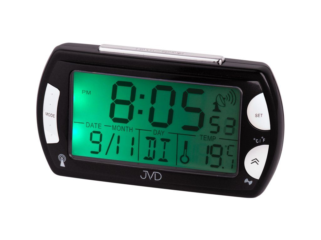 Pomocí tohoto budíku značky JVD budete znát nejpřesnější čas na kontinentu. Přijímá totiž časový signál z Frankfurtu, jehož možná odchylka je menší než 1 sekunda za 2 miliony let!