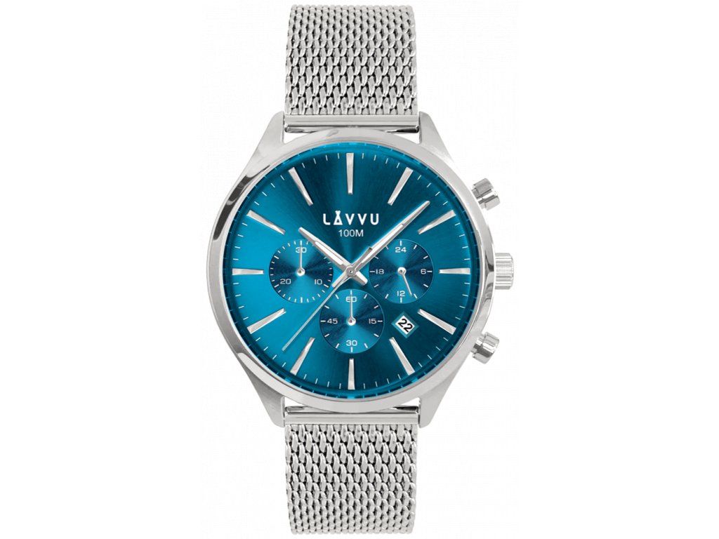 Odolné hodinky značky LAVVU s chronografem, vyrobené z hypoalergenní nerezové oceli. Nadstandardní vodotěsnost 100M, minerální tvrzené sklíčko, ukazatel data a stylový design z nich tvoří spolehlivý doplněk, který bude skvěle vypadat k formálnímu i volnočasovému oblečení. Vyměnitelný řemínek je možné zkrátit a přizpůsobit obvodu ruky.