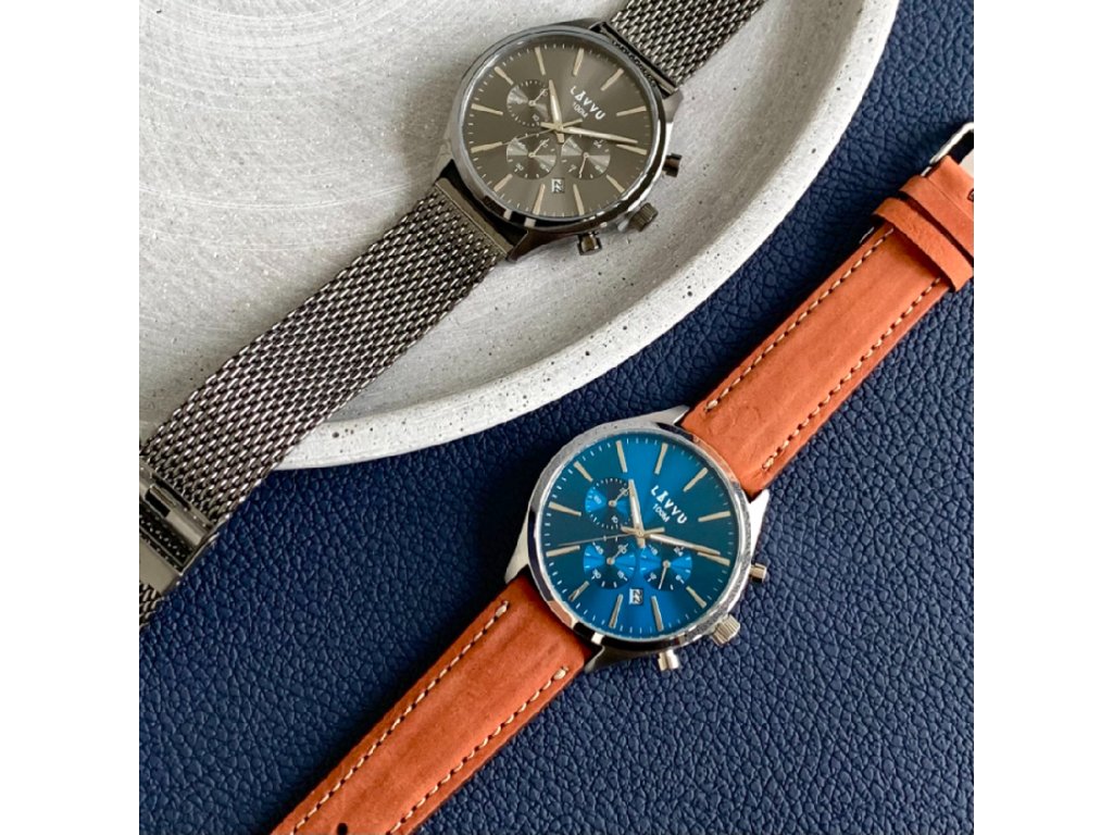 Odolné hodinky značky LAVVU s chronografem, vyrobené z hypoalergenní nerezové oceli. Nadstandardní vodotěsnost 100M, minerální tvrzené sklíčko, ukazatel data a stylový design z nich tvoří spolehlivý doplněk, který bude skvěle vypadat k formálnímu i volnočasovému oblečení. Vyměnitelný řemínek je možné zkrátit a přizpůsobit obvodu ruky.