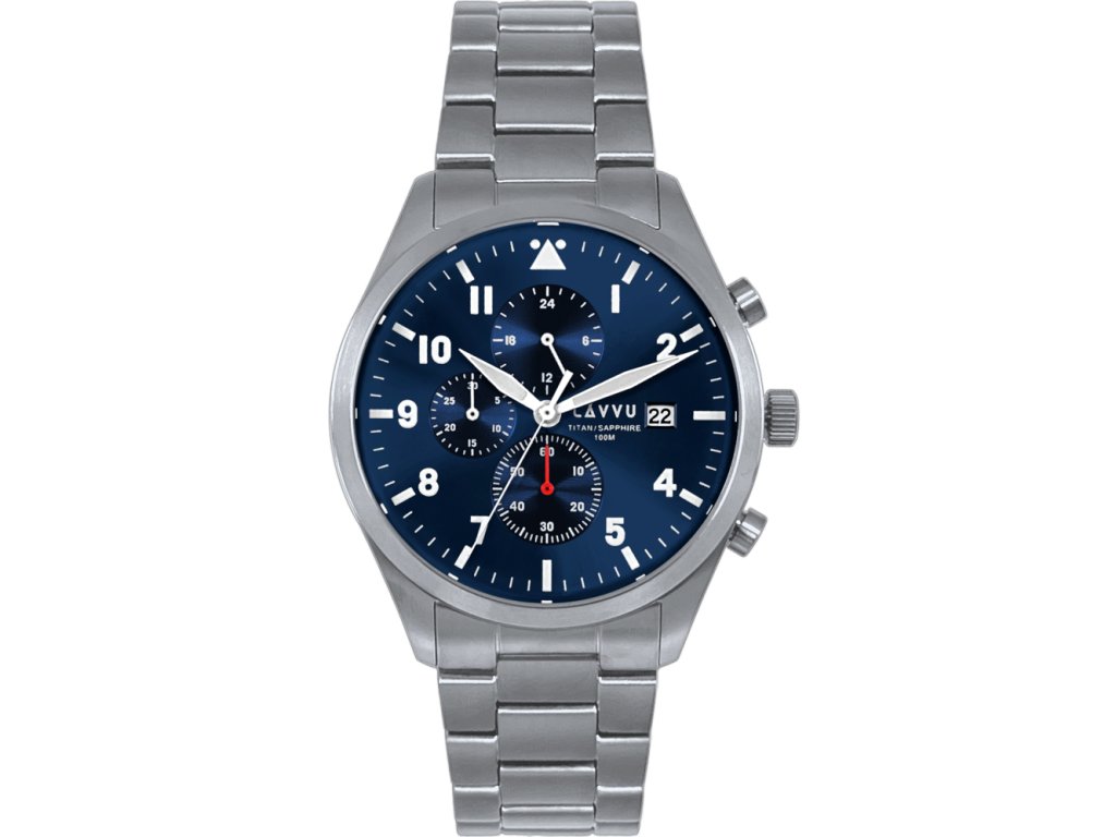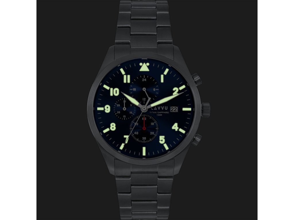 LAVVU Pánské titanové hodinky PILOT Chronograph Deep Blue 100M Sapphire