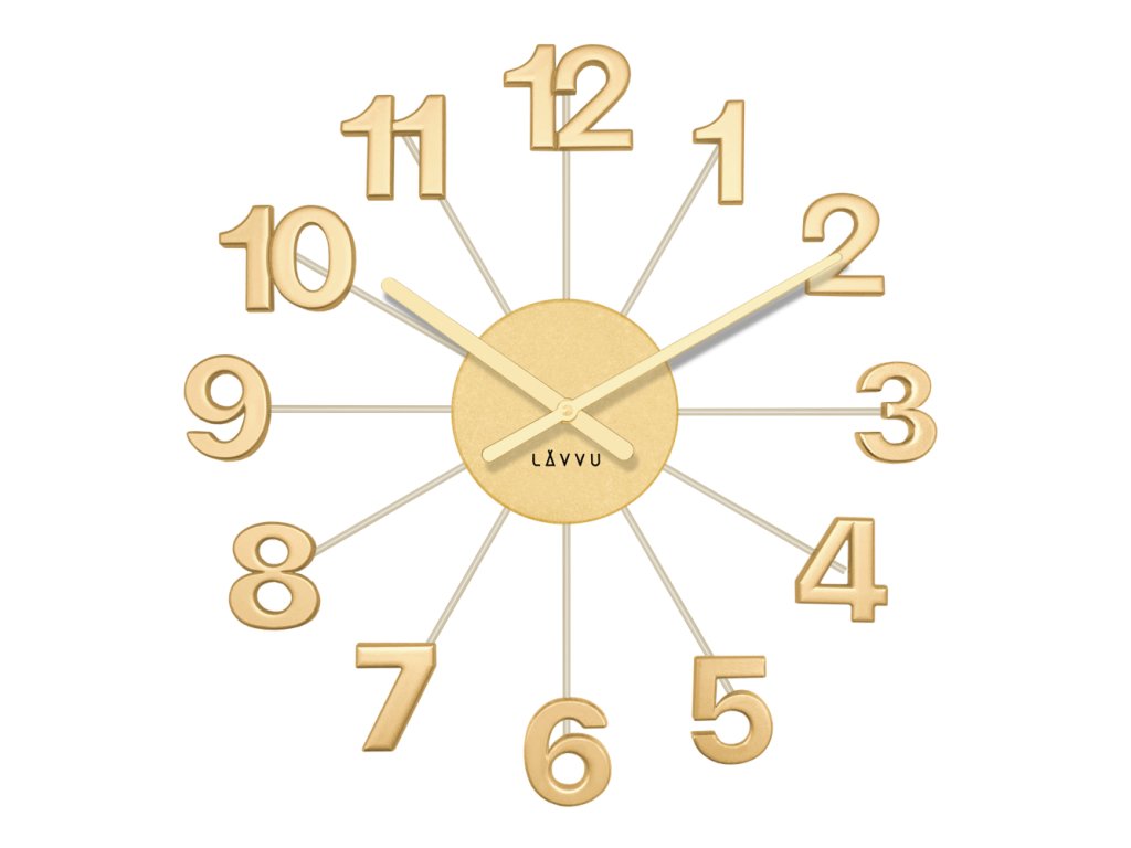 Nástěnné hodiny LAVVU NUANCE v příjemném zlatém odstínu, díky kterému hodiny snadno zkombinujete s dalšími doplňky ve Vašem interiéru. Hodiny navíc svým designem rozzáří každou místnost.