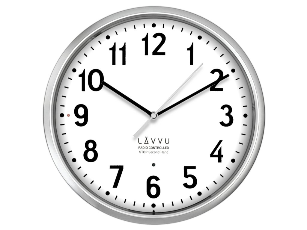 LAVVU Stříbrné hodiny Accurate Metallic Silver řízené rádiovým signálem - 3 ROKY ZÁRUKA! ⌀30cm