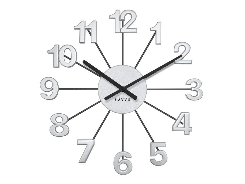 LAVVU Stříbrno-černé hodiny Nuance vyrobené v Čechách ⌀42cm