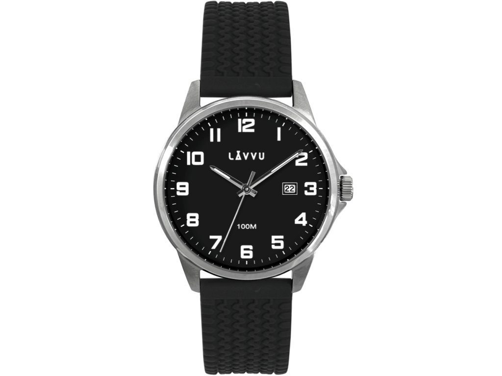 LAVVU Stříbrno-černé pánské hodinky ÖREBRO se silikonovým řemínkem