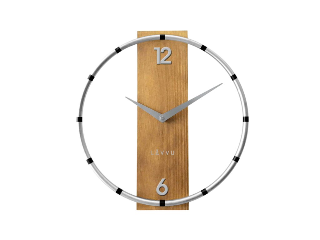 LAVVU Stříbrno-hnědé dřevěné hodiny COMPASS Wood
