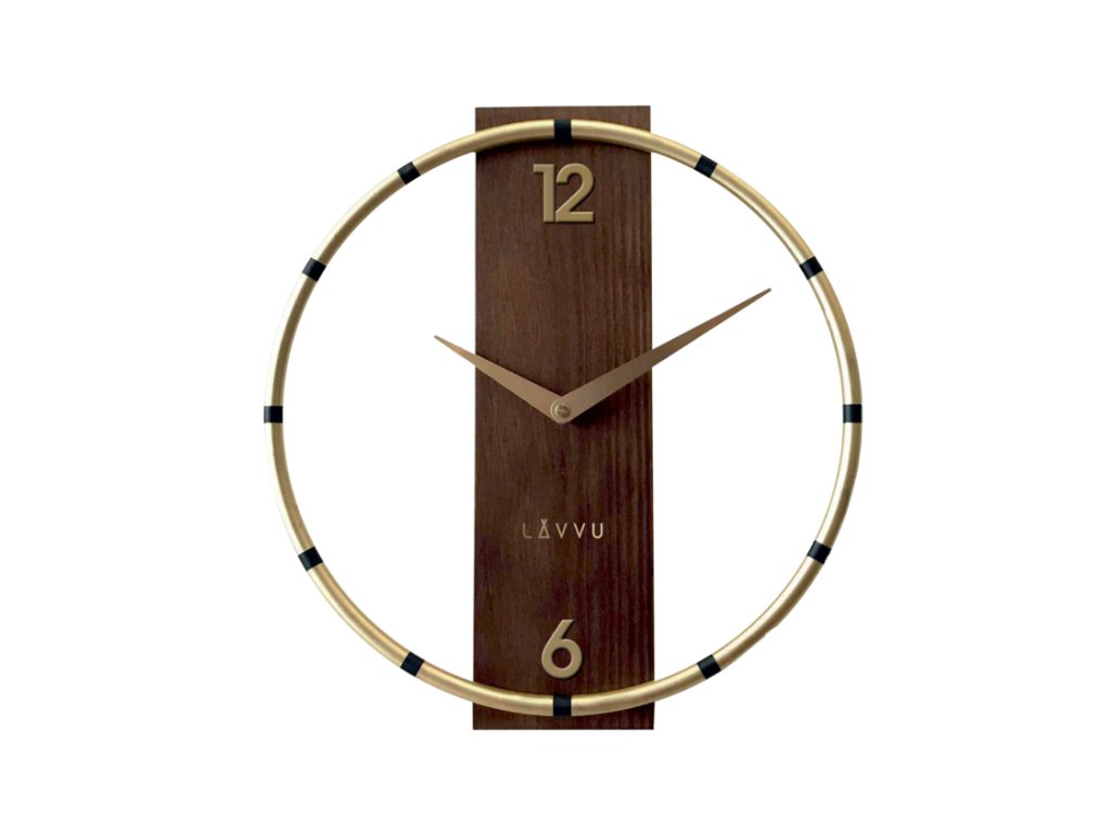 LAVVU Zlato-hnědé dřevěné hodiny COMPASS Wood