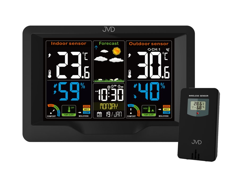 Speciální funkce: | Datum (kalendář), Celoplošné prosvícení displeje, Španělština, 12-ti nebo 24-hodinový denní režim, Rádiem řízený čas z Frankfurtu n. M. (RCC), Teploměr (vnitřní a venkovní teplota čidlem), Francouzština, Teplota (Celsius nebo Fahrenheit), Budík – nastavení pro pracovní dny, Italština, Opakování zvonění 5 min., Němčina, Postupné zesilování zvonění, Dánština, Rozsah teplot + –, Předpověď počasí, Budík, Budík – nastavení pro víkendy, Angličtina |