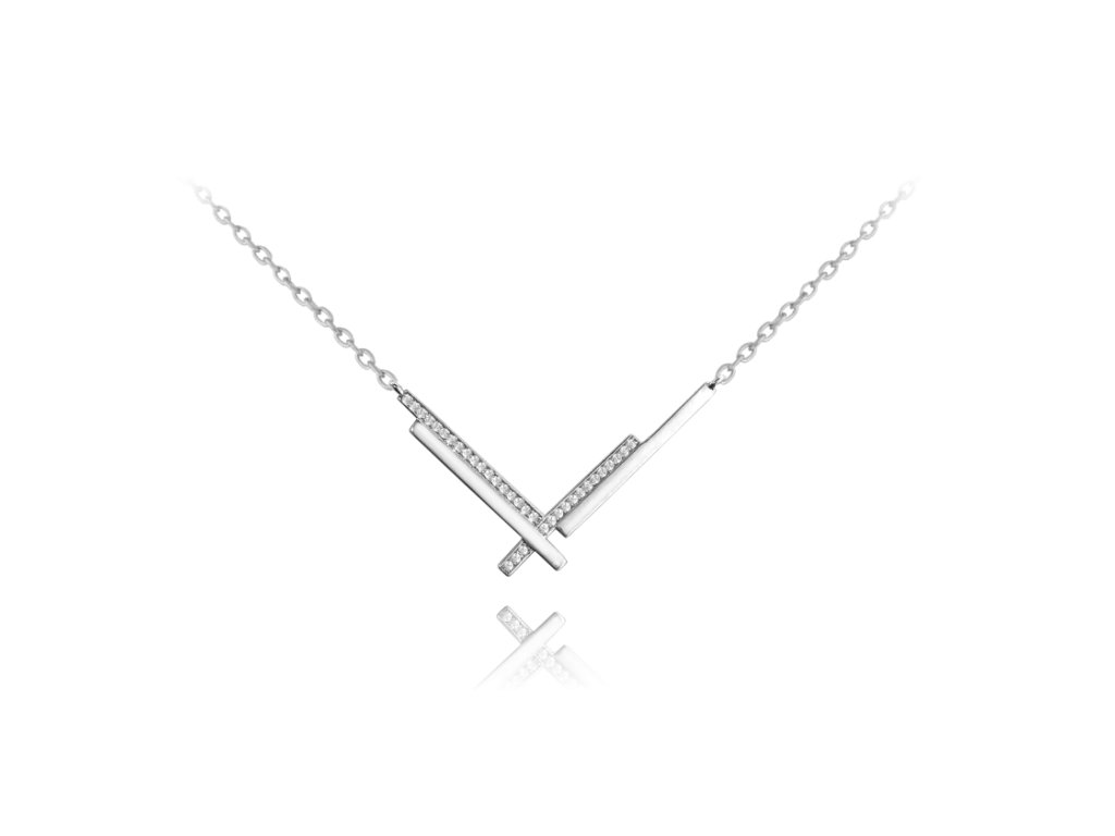 MINET Abstraktní stříbrný náhrdelník ABSTRACT s bílými zirkony