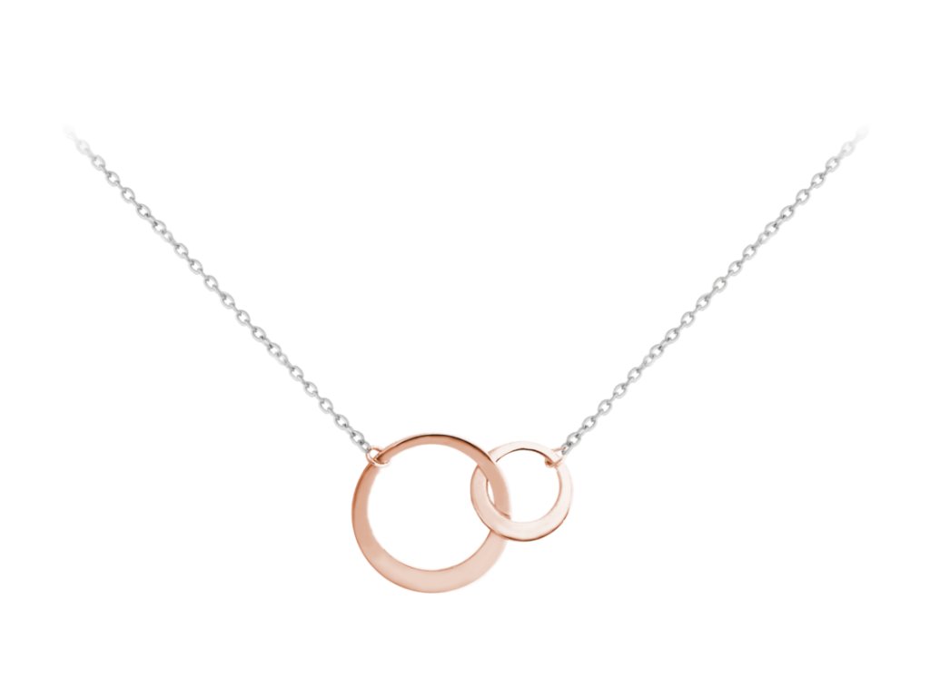MINET Asymetrický rose gold stříbrný náhrdelník KROUŽKY