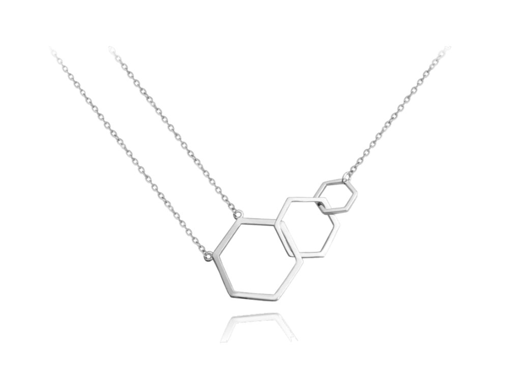 MINET Asymetrický stříbrný náhrdelník HEXAGON