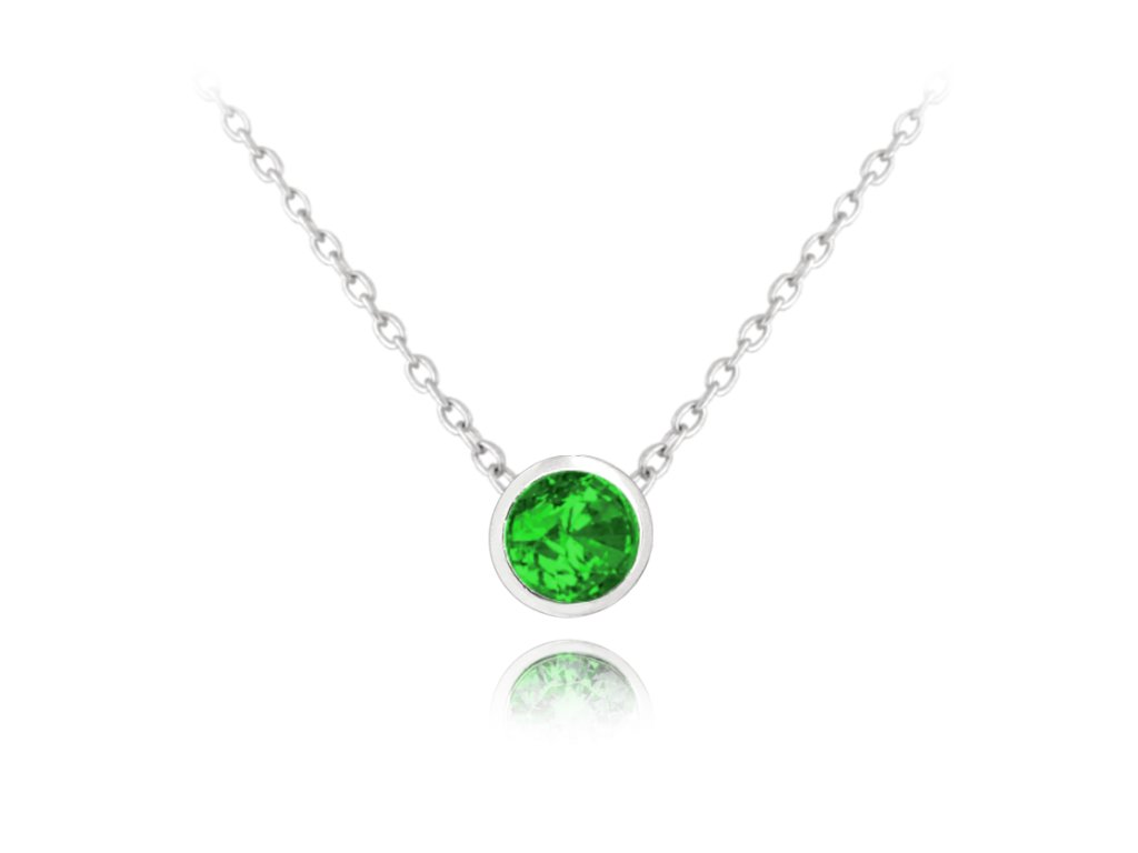 MINET Decentní stříbrný náhrdelník se zeleným zirkonem