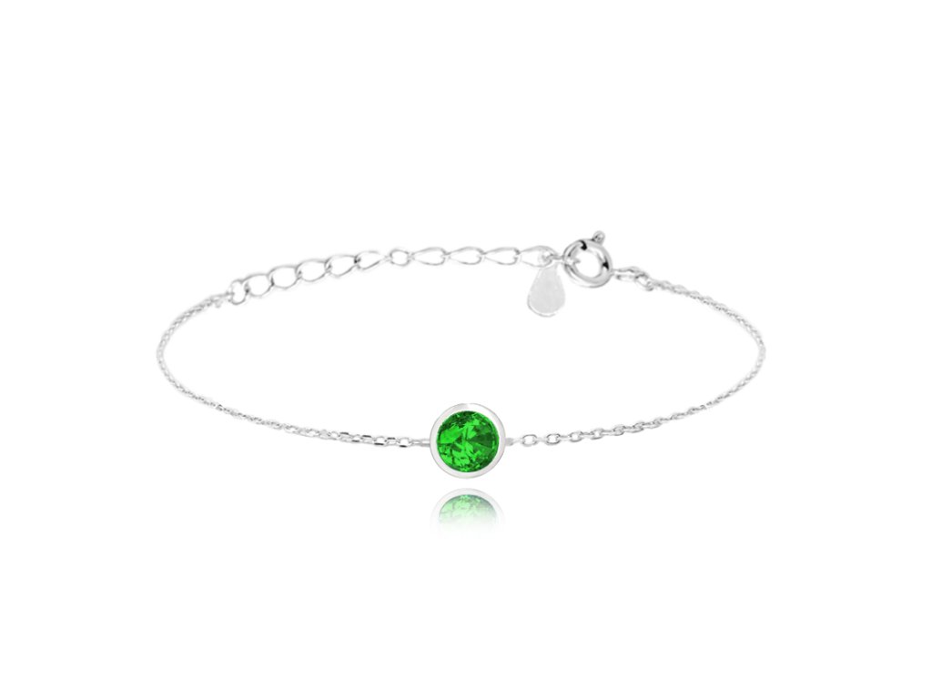 MINET Decentní stříbrný náramek se zeleným zirkonem