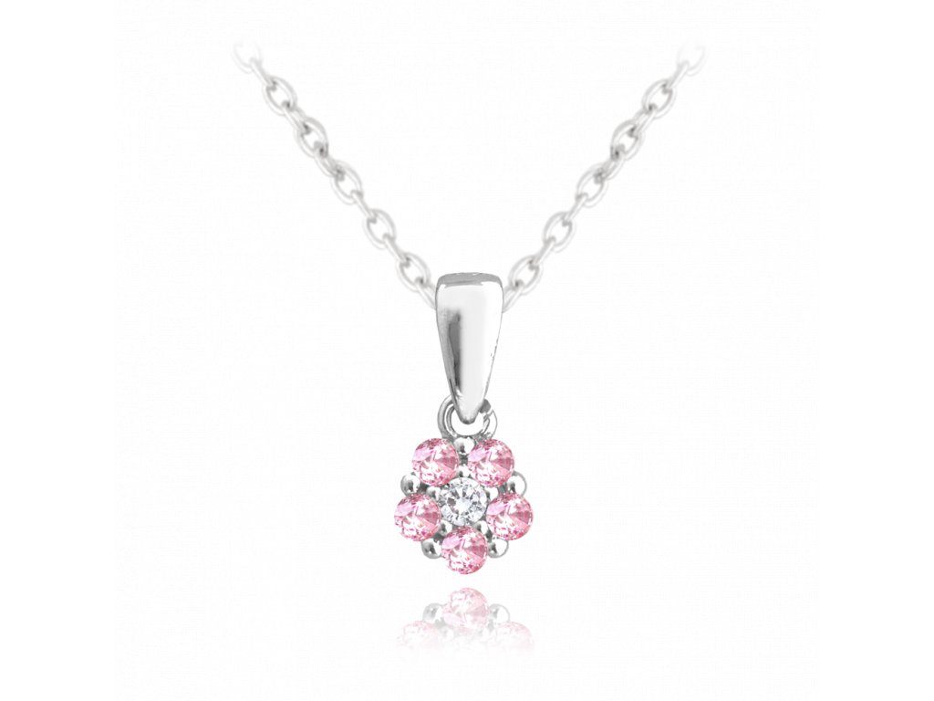 MINET Dětský stříbrný náhrdelník KYTIČKA s růžovými zirkony
