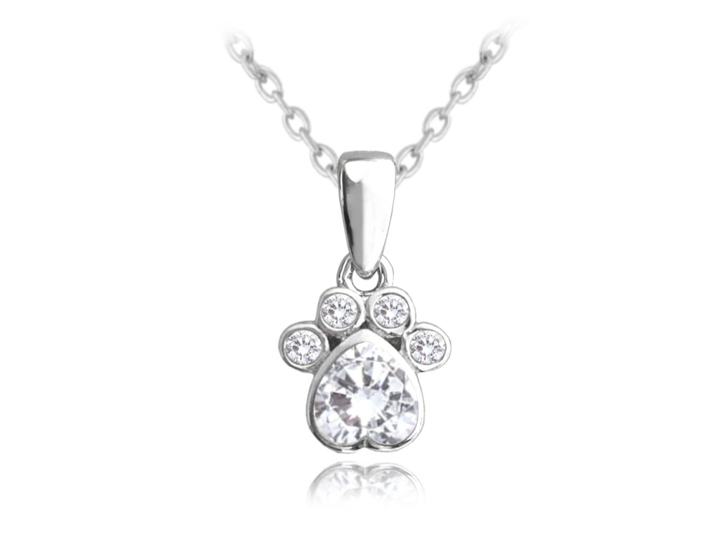 MINET Dětský stříbrný náhrdelník TLAPKA s bílými zirkony