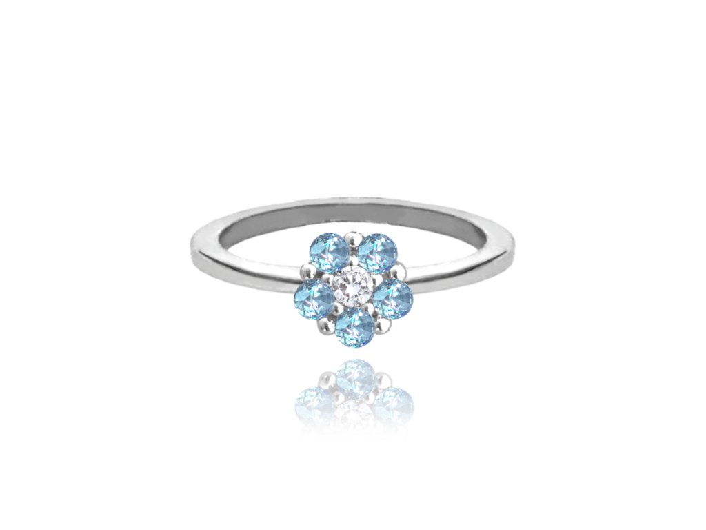 MINET Dětský stříbrný prsten KYTIČKA se světle modrými zirkony vel. 54