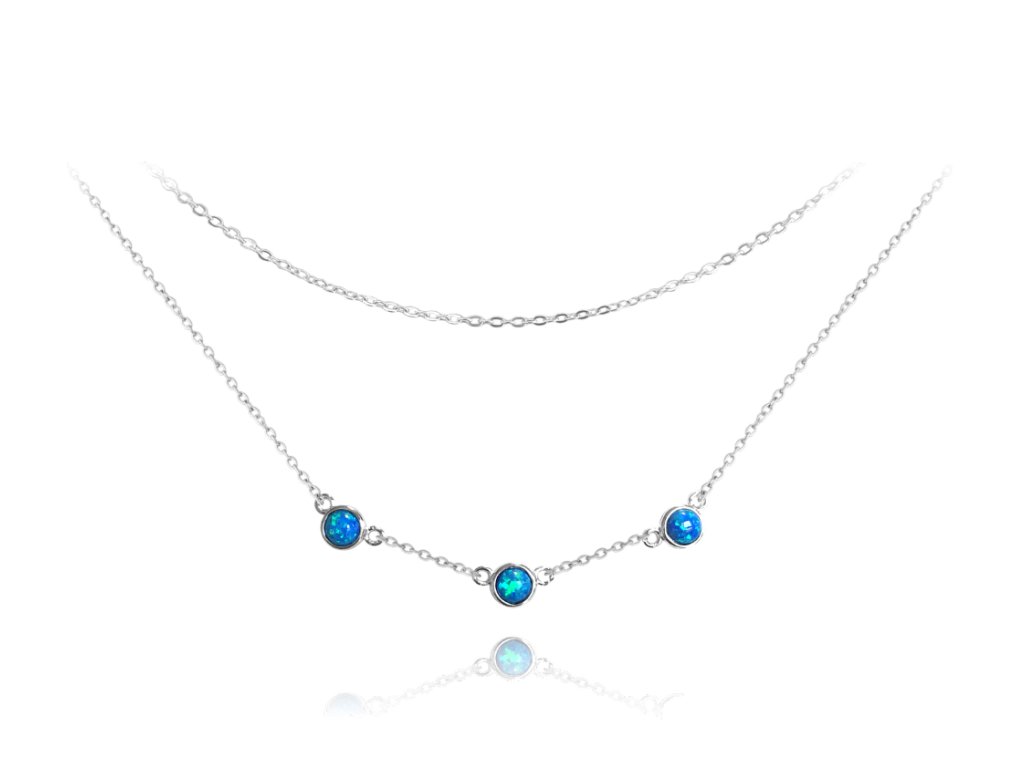 MINET Dvojitý stříbrný náhrdelník s modrými opálky