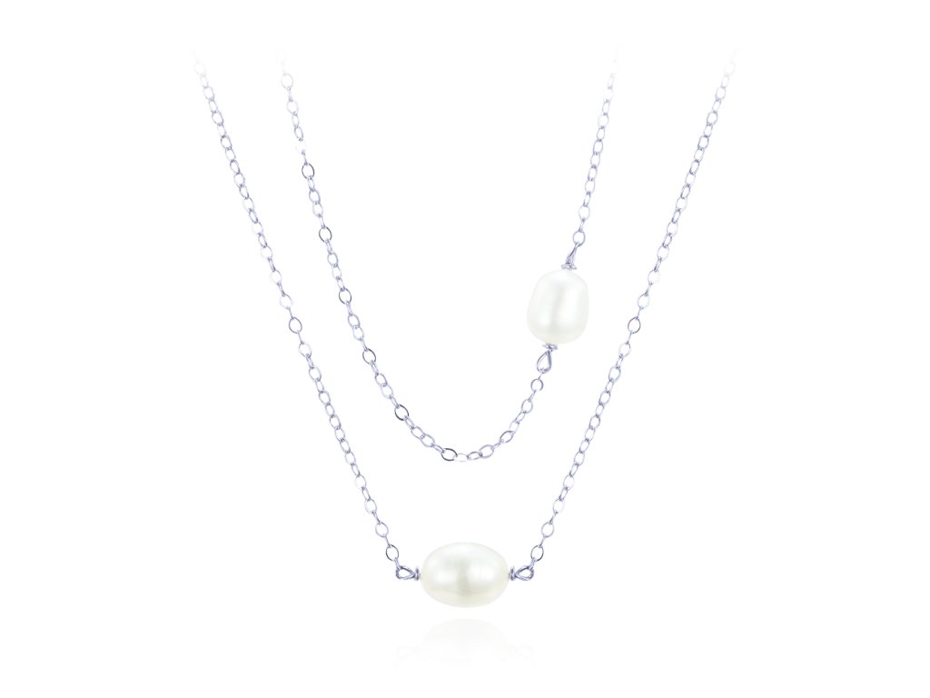 MINET Dvojitý stříbrný náhrdelník s přírodní perlou
