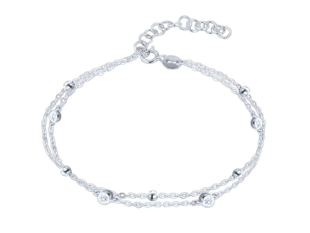 MINET Dvojitý stříbrný náramek s bílými zirkony