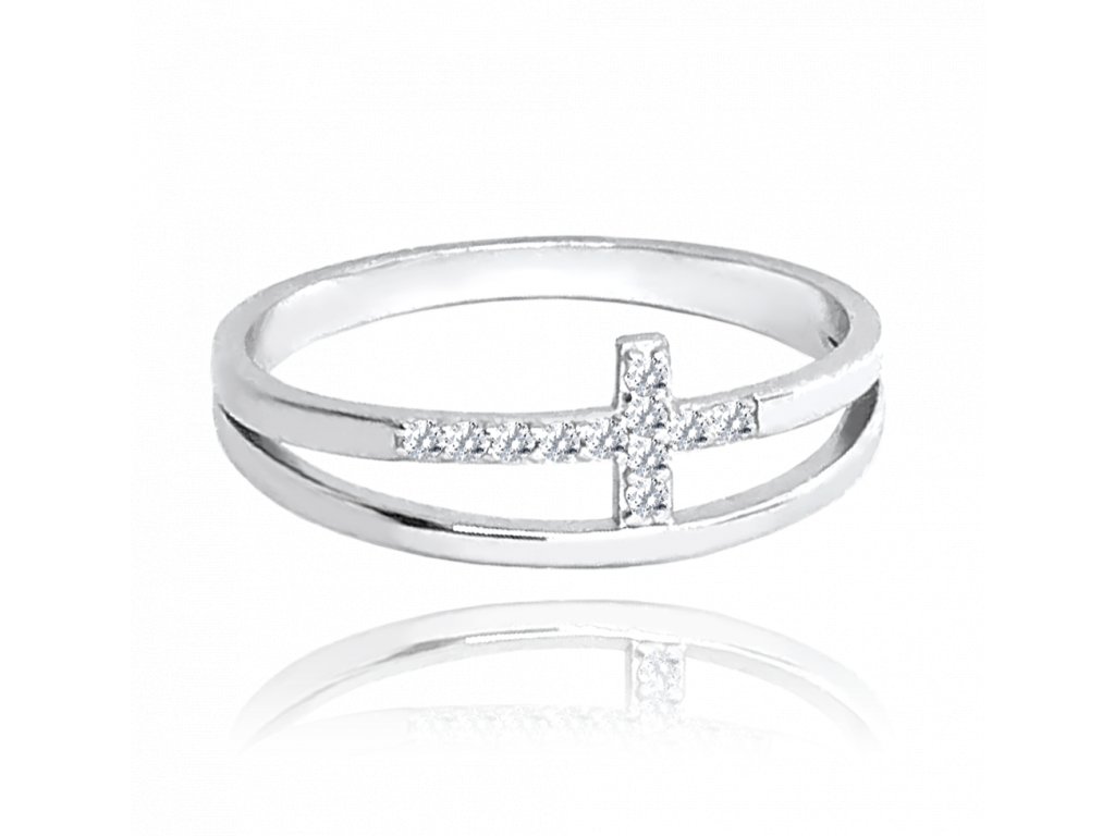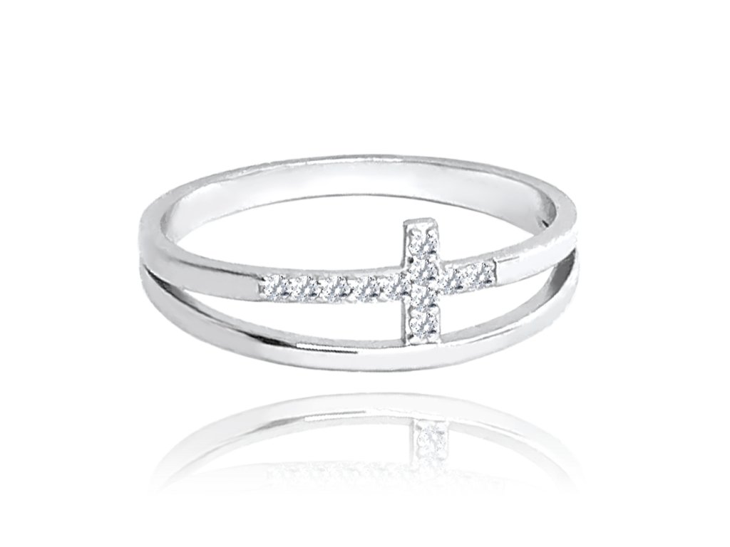 MINET Dvojitý stříbrný prsten KŘÍŽEK s bílými zirkony