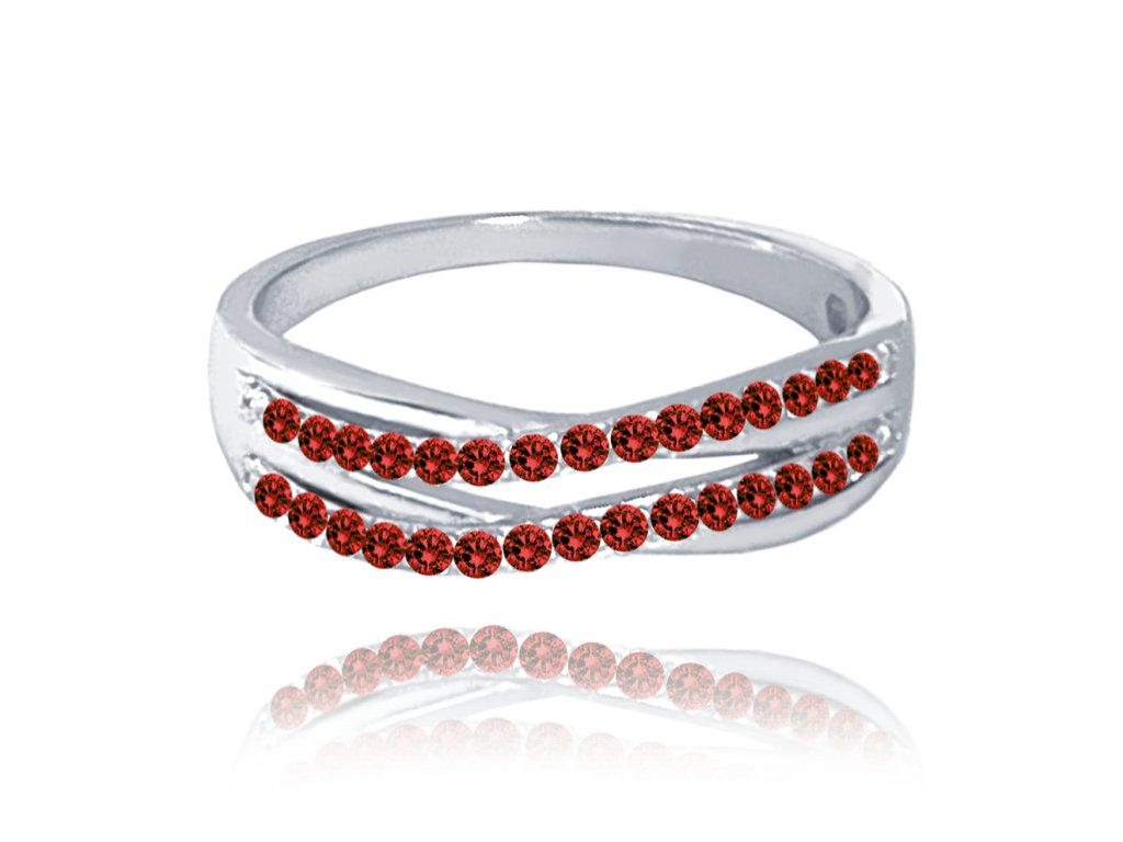 MINET Elegantní stříbrný prsten s červenými zirkony