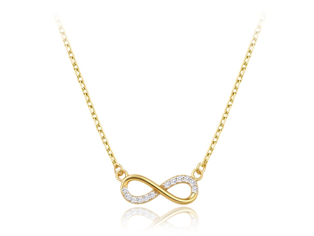 MINET Elegantní zlatý náhrdelník nekonečno s bílými zirkony Au 585/1000 1,85g