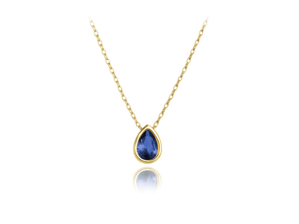 MINET Elegantní zlatý náhrdelník s tmavě modrým zirkonem Au 585/1000 1,90g