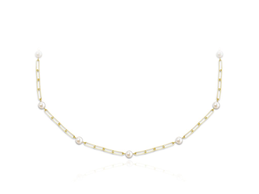 MINET Elegantní zlatý náhrdelník v italském stylu s bílými perlami Au 585/1000 4,60g