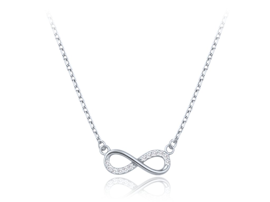 MINET Elegantní zlatý náhrdelník z bílého zlata nekonečno s bílými zirkony Au 585/1000 1,85g