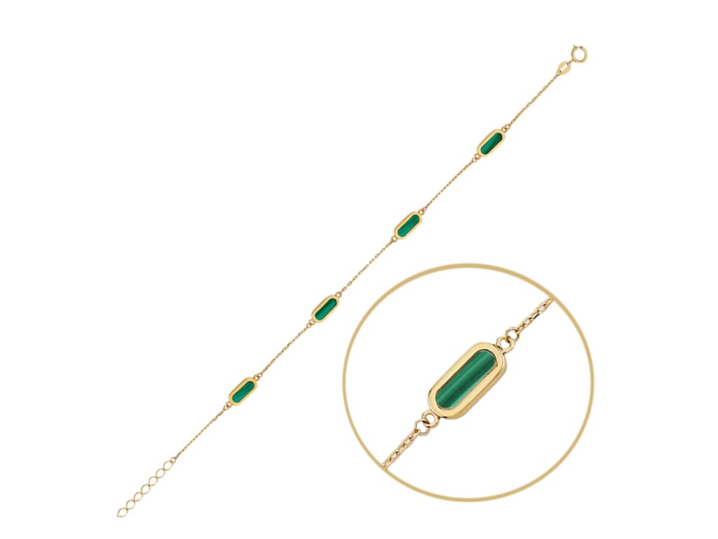 MINET Elegantní zlatý náramek se zeleným malachitem Au 585/1000 2,05g