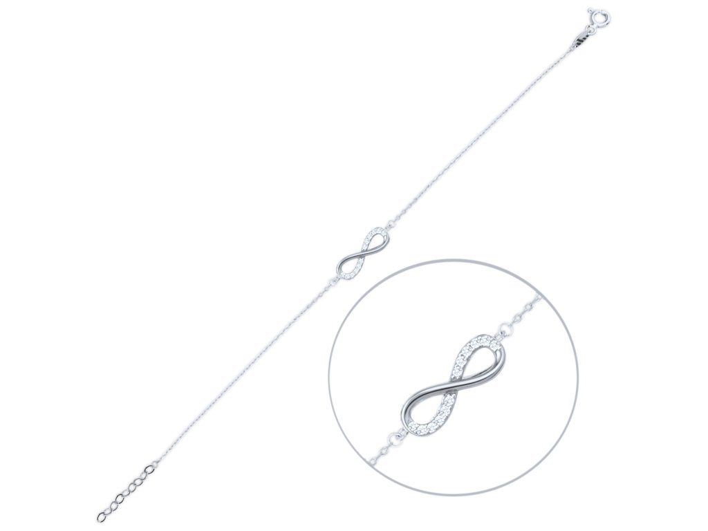 MINET Elegantní zlatý náramek z bílého zlata nekonečno s bílými zirkony Au 585/1000 1,15g