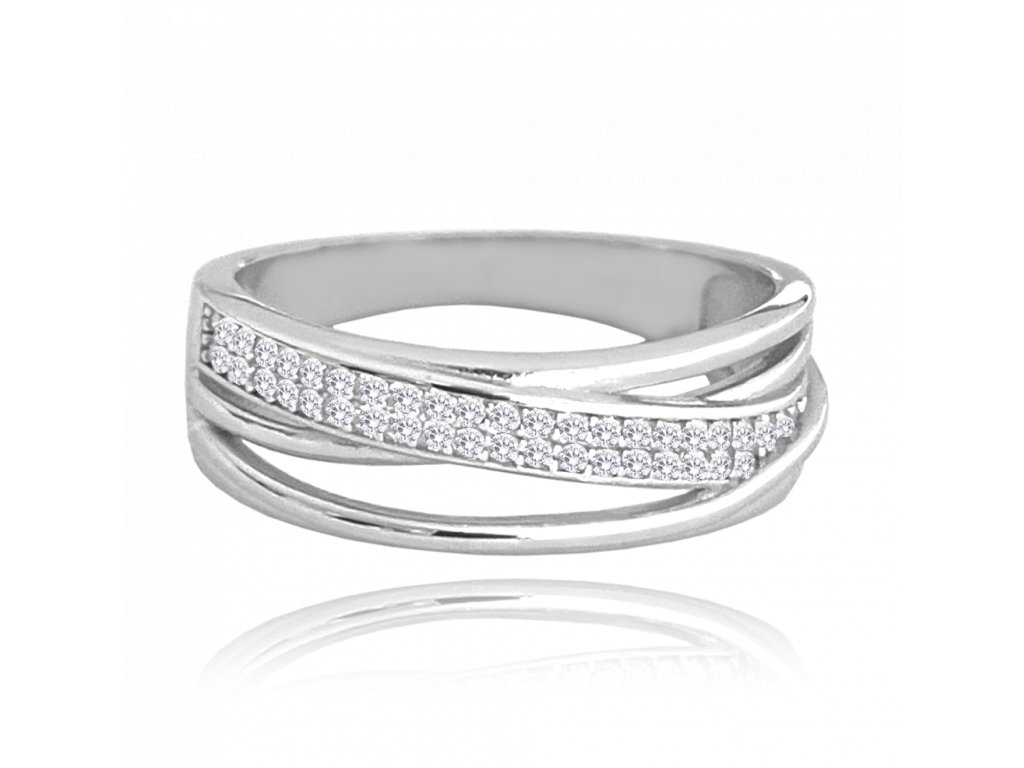 MINET Křížený stříbrný prsten s bílými zirkony vel. 68