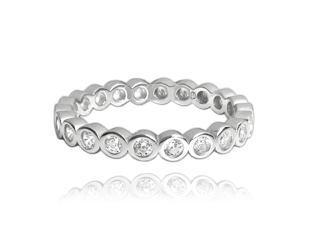 MINET Kuličkový stříbrný prsten s bílými zirkony