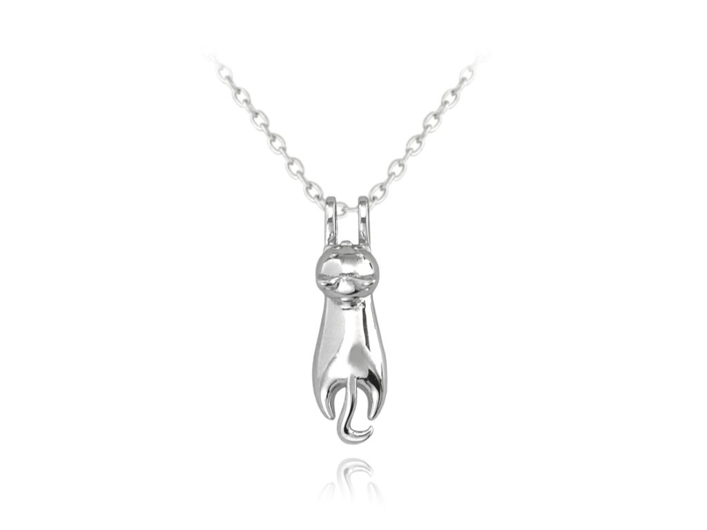 MINET Lesklý stříbrný náhrdelník KOČKA