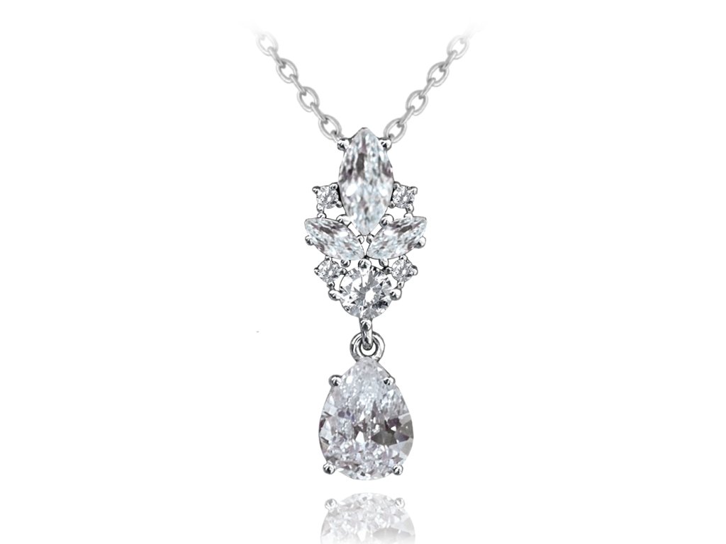 MINET Luxusní ozdobný stříbrný náhrdelník s bílými zirkony